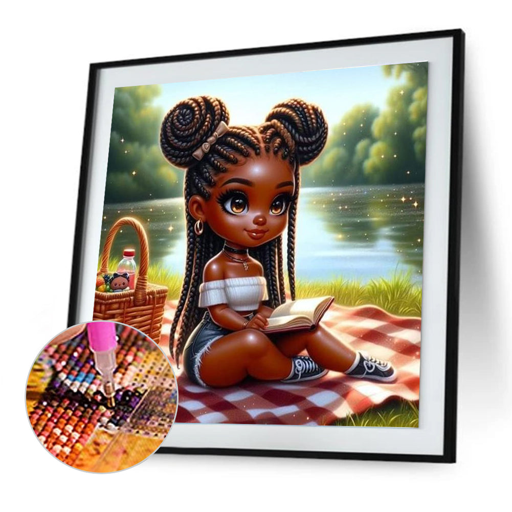 Diamond Painting - Full Round - Girl with pigtails reading a book (30*30CM)
