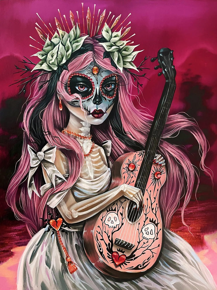 Diamond Painting - Full Round - Girl with pink hair in ghost makeup (40*50CM)