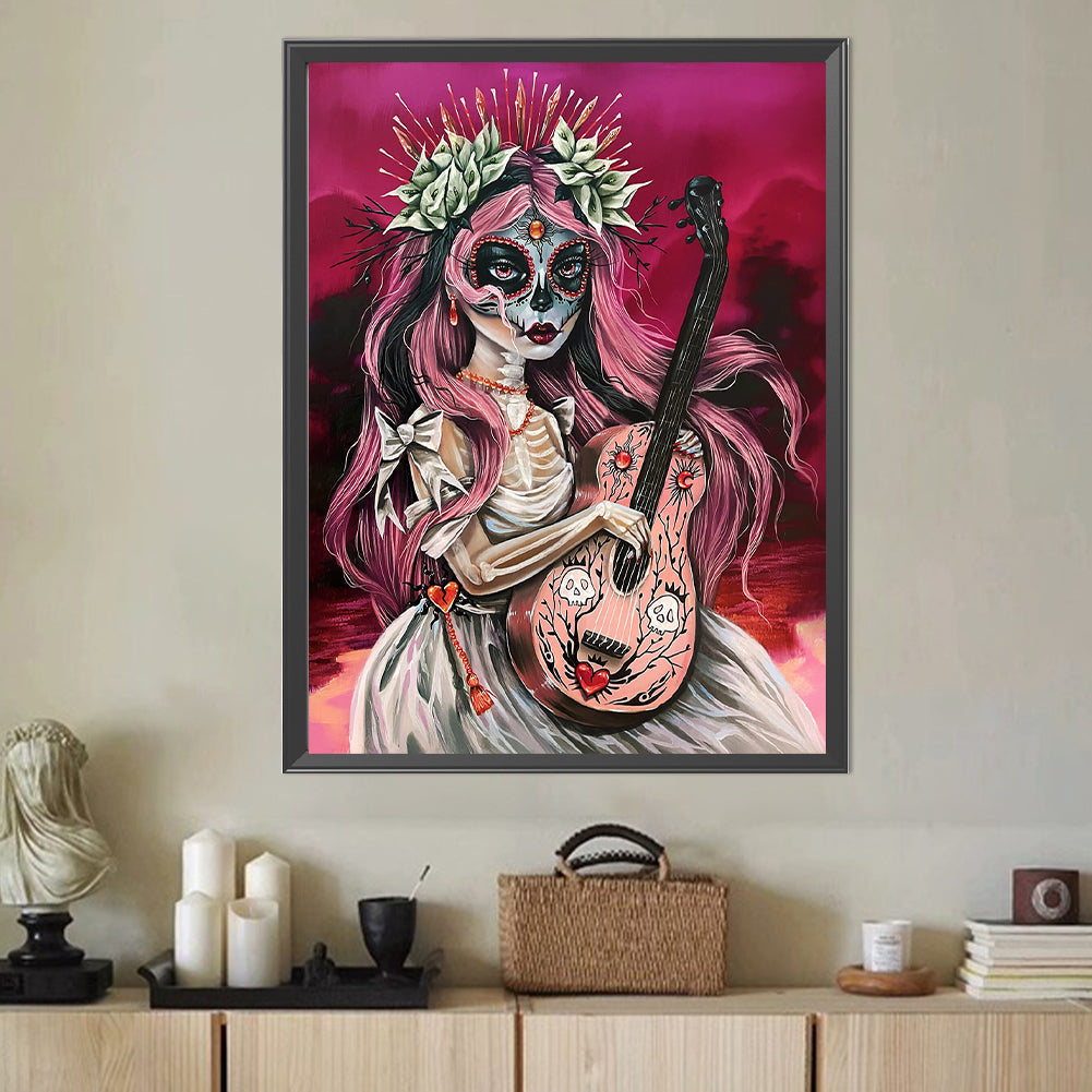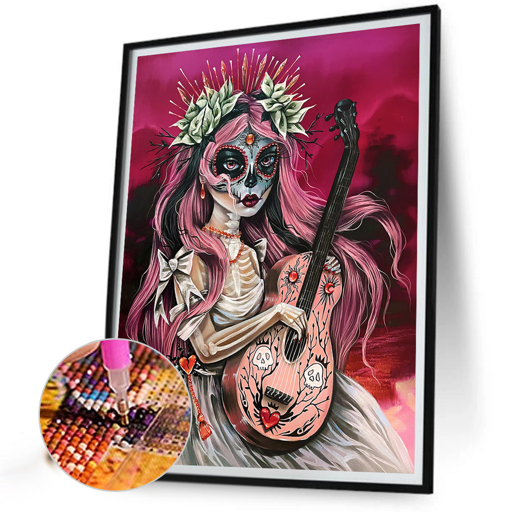 • Load image into Gallery viewer, Diamond Painting - Full Round - Girl with pink hair in ghost makeup (40*50CM)