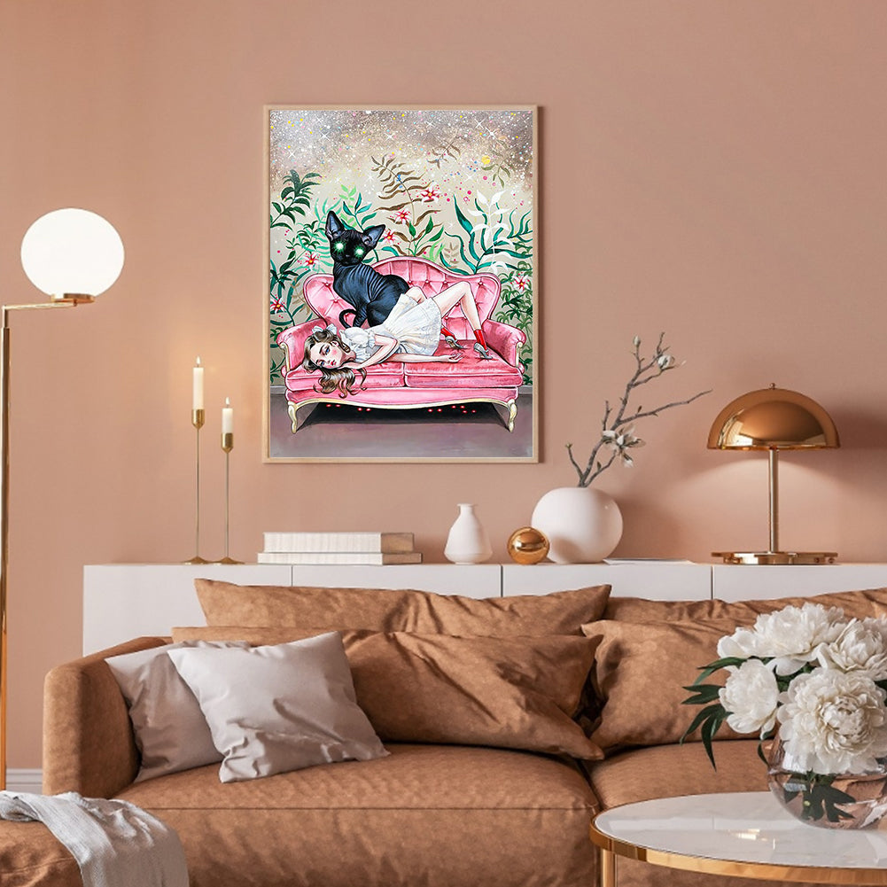 Diamond Painting - Full Round - girl with white cat (30*40CM)