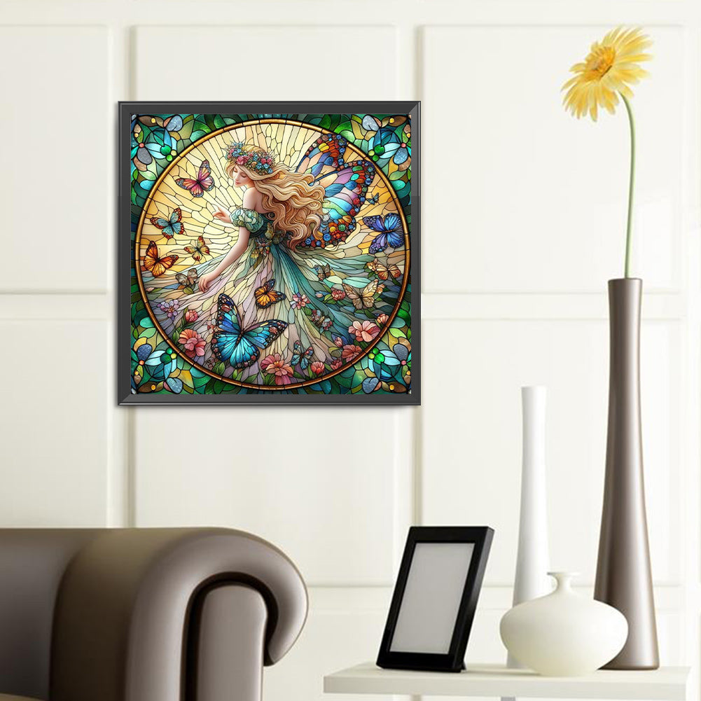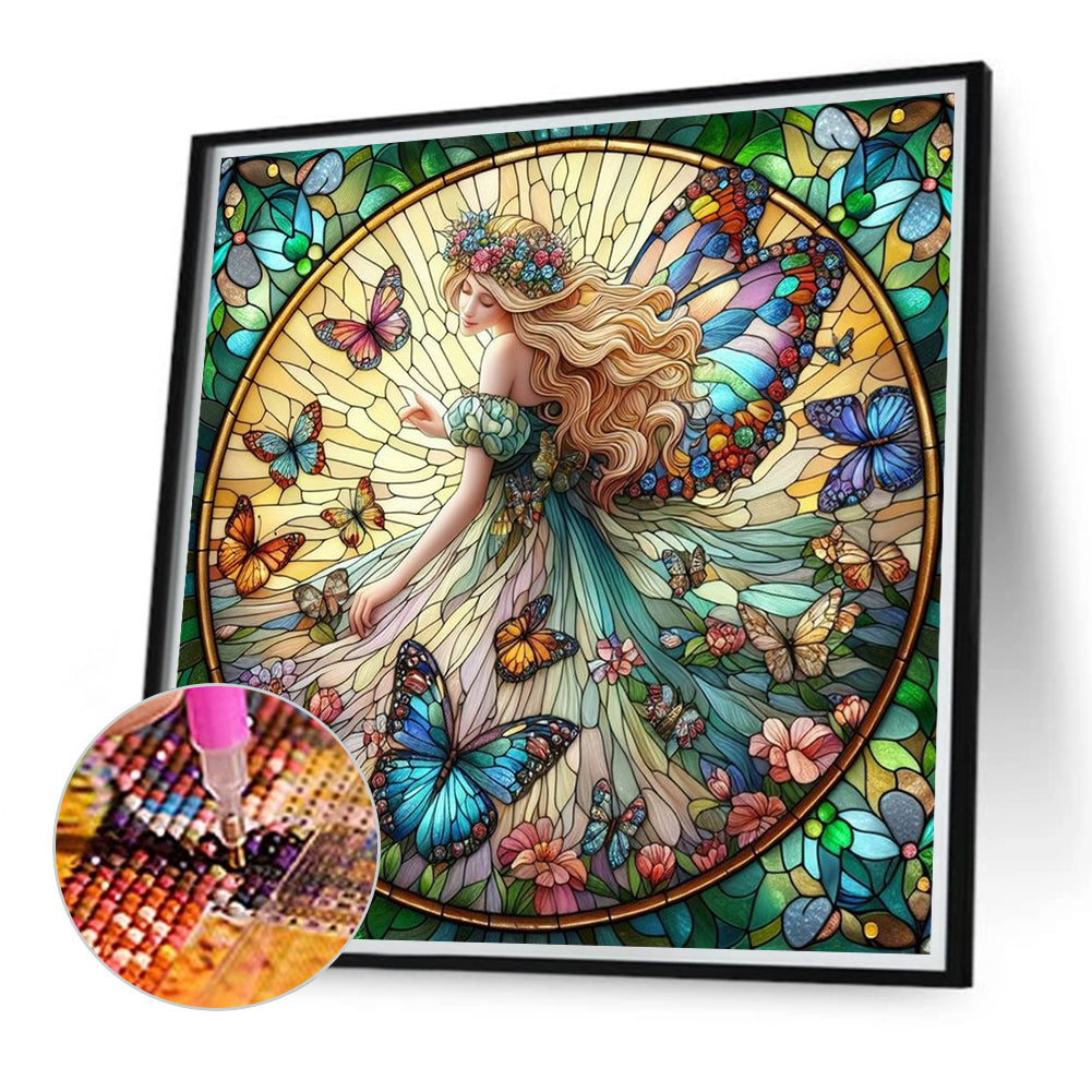 Diamond Painting - Full Round - Glass art butterfly fairy (40*40CM)