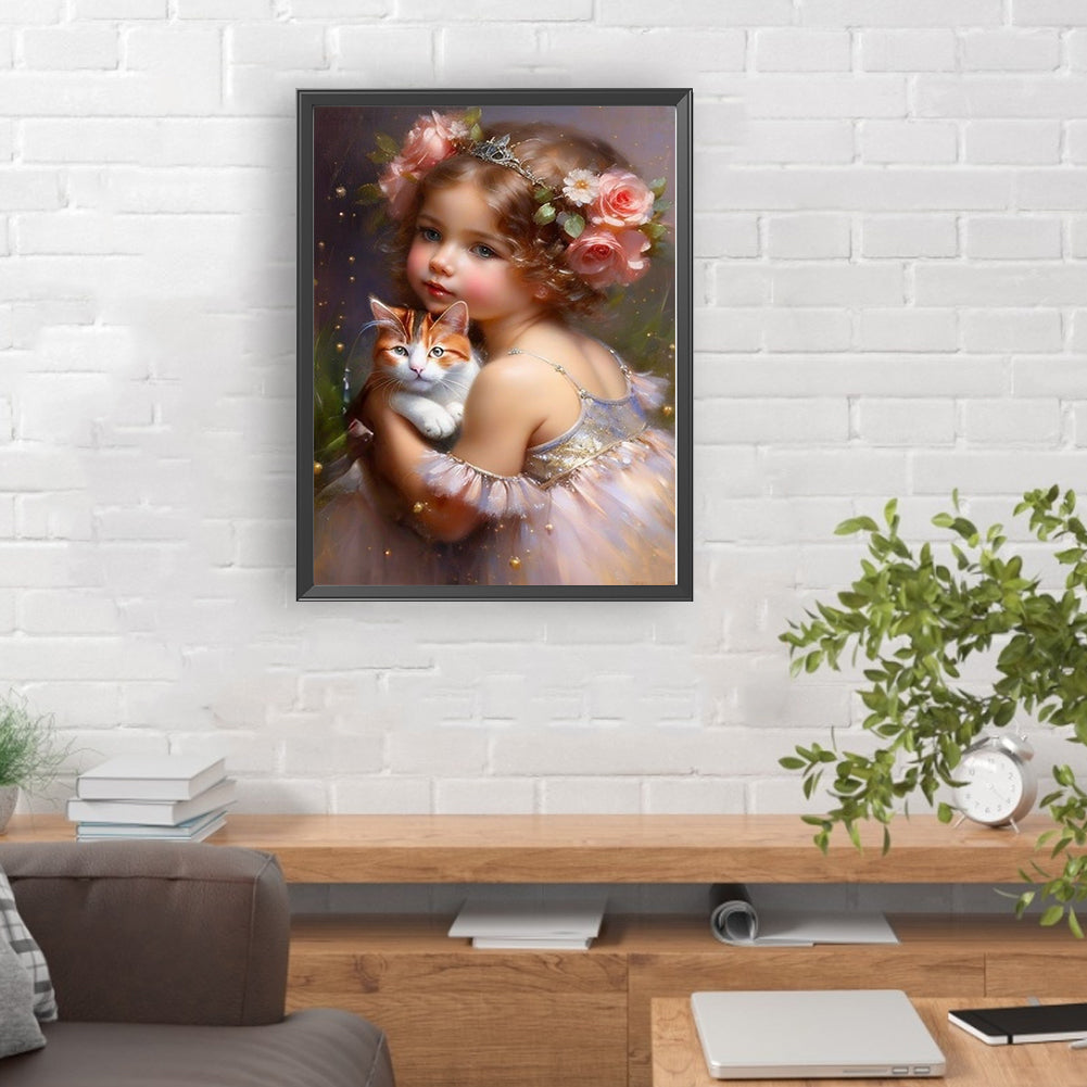 Diamond Painting - Full Round - little girl holding cat (30*40CM)