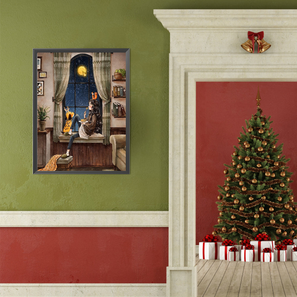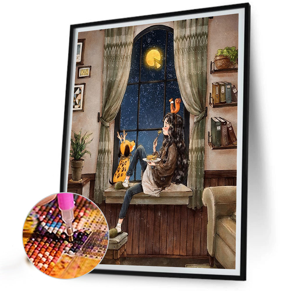 Diamond Painting - Full Round - Moon watching girl (40*50CM)