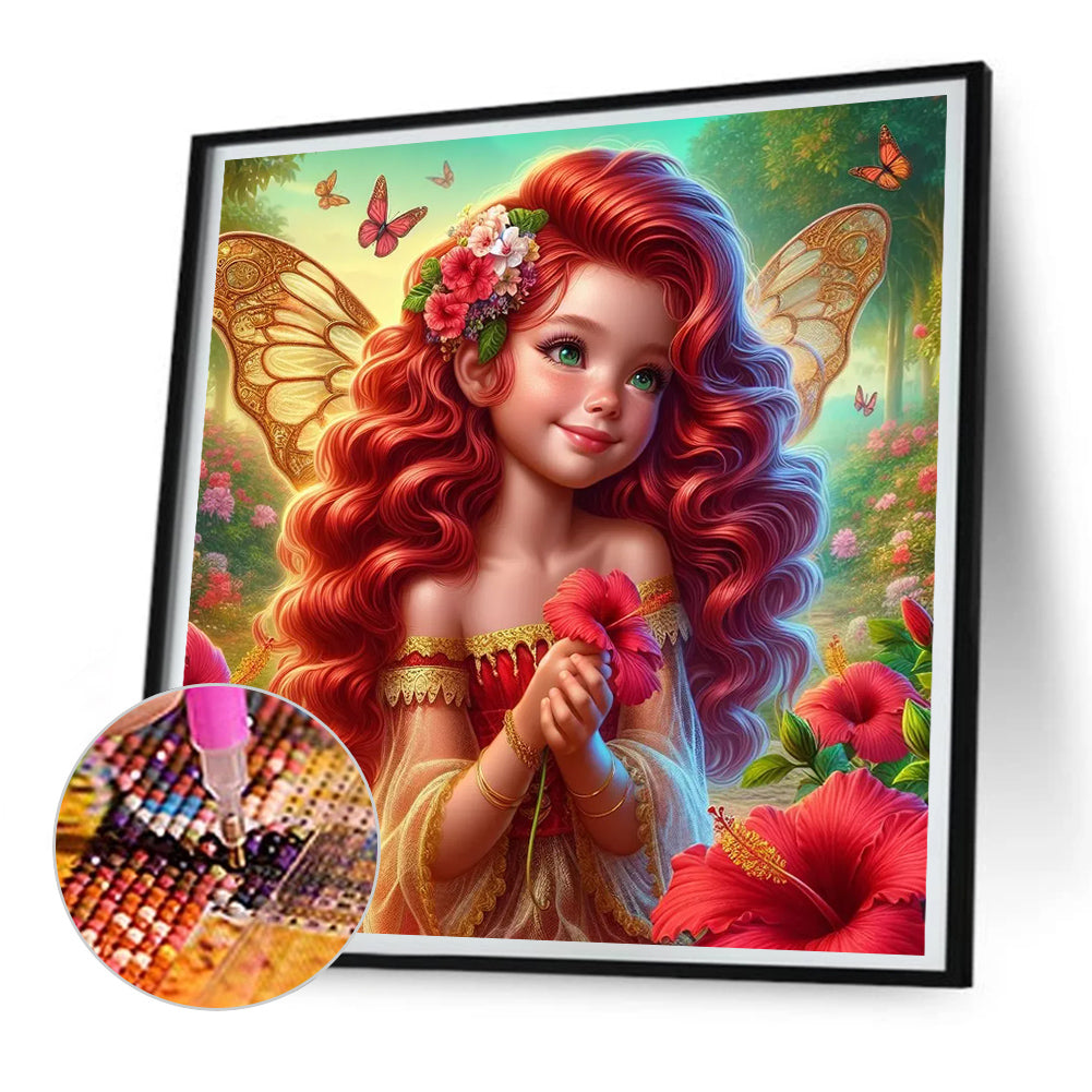 Diamond Painting - Full Round - Red hair butterfly girl (30*30CM)