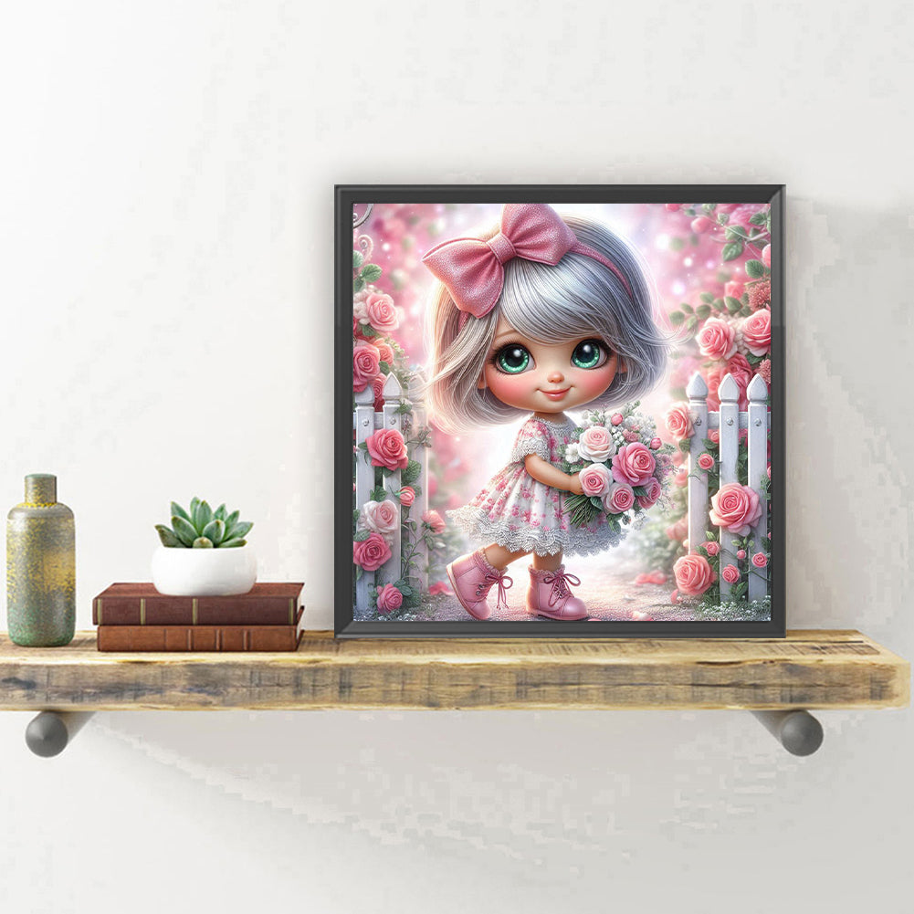 Diamond Painting - Full Round - Rose garden silver-haired girl (30*30CM)