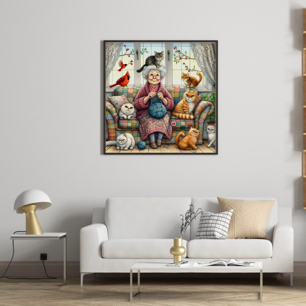 Diamond Painting - Full Round - The old man and her pets (40*40CM)