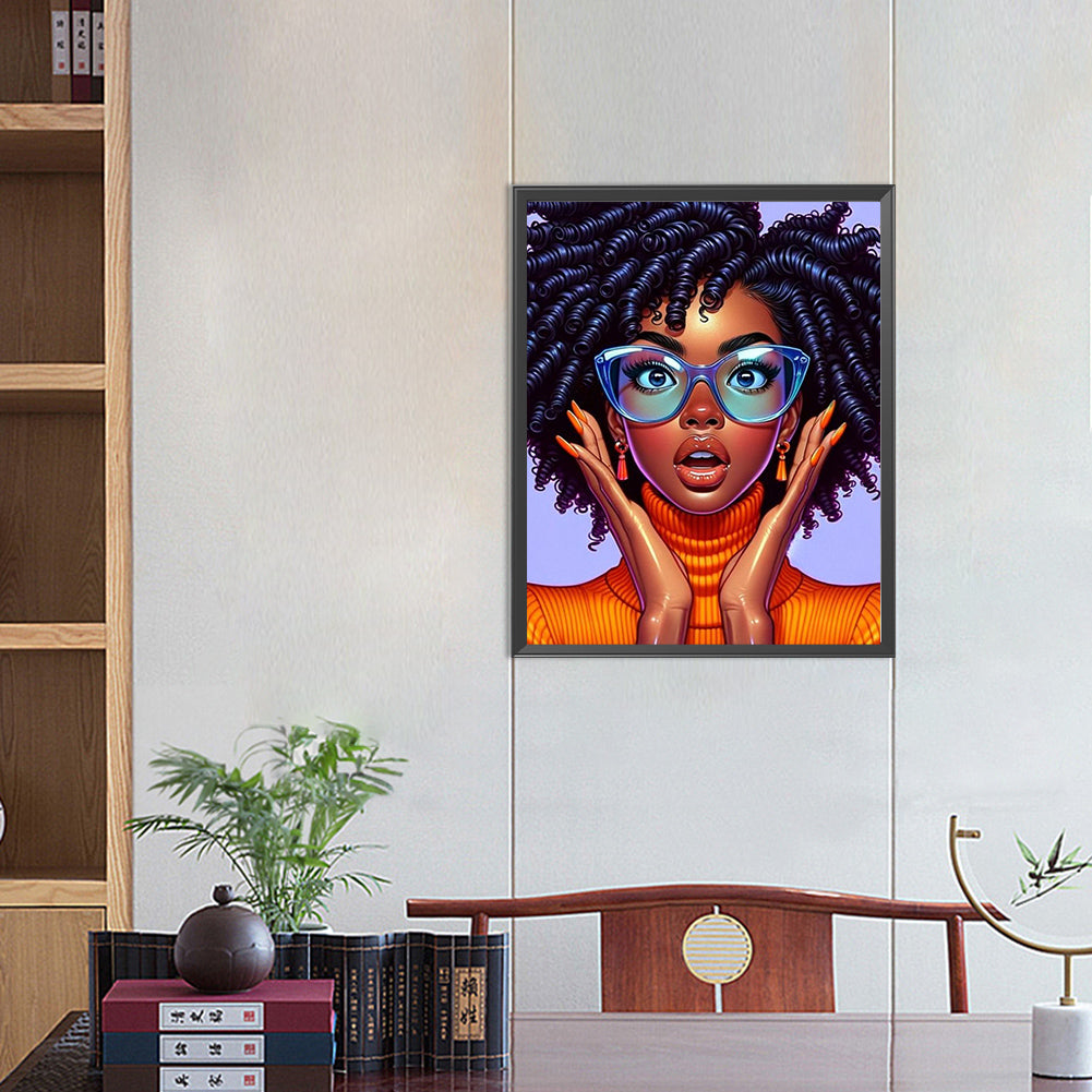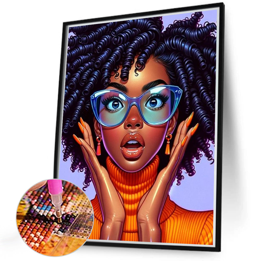 Diamond Painting - Full Round - Woman with blue glasses (40*50CM)