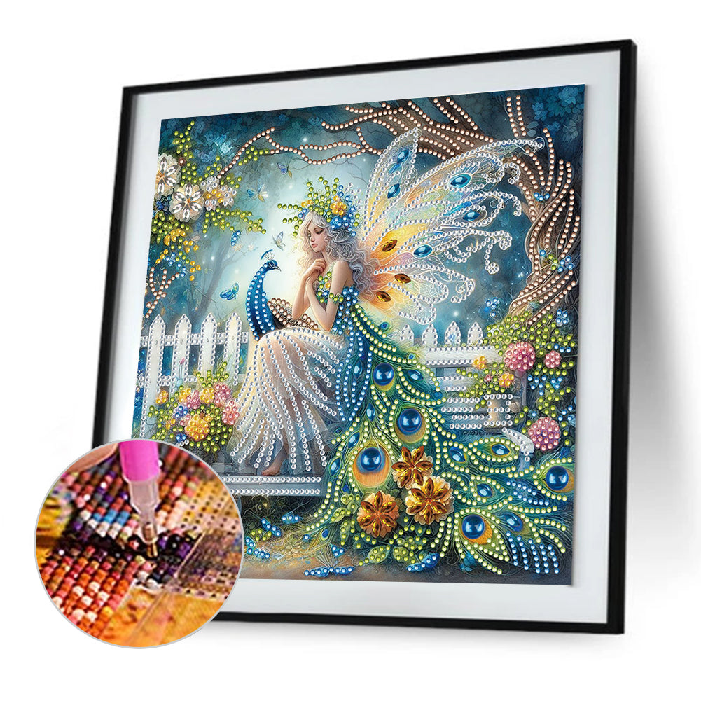 Diamond Painting - Partial Special Shaped - Butterfly girl and peacock (30*30CM)