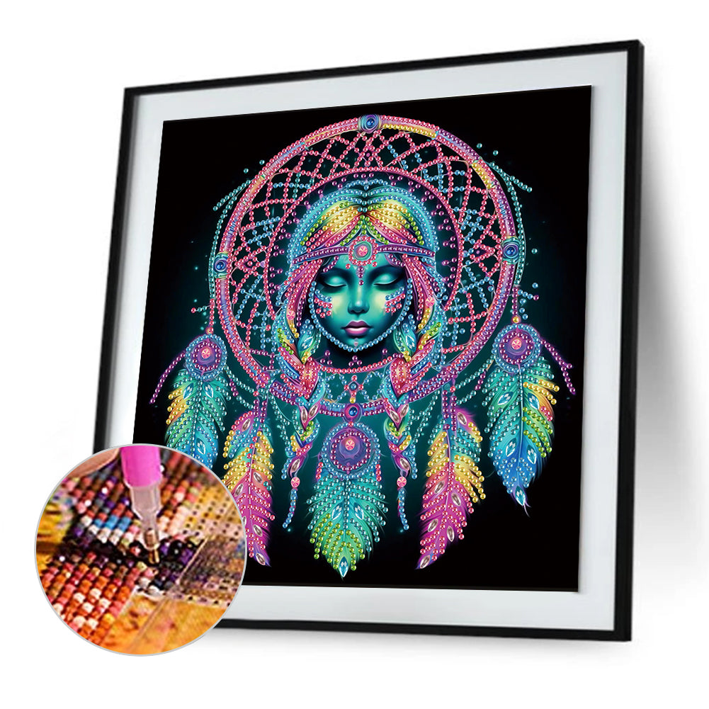 Diamond Painting - Partial Special Shaped - Exotic dream catcher girl (30*30CM)
