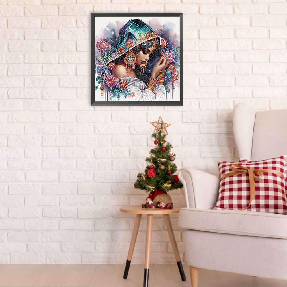 Diamond Painting - Partial Special Shaped - Exotic flower girl (30*30CM)