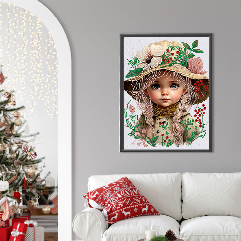Diamond Painting - Partial Special Shaped - flower hat girl (30*40CM)