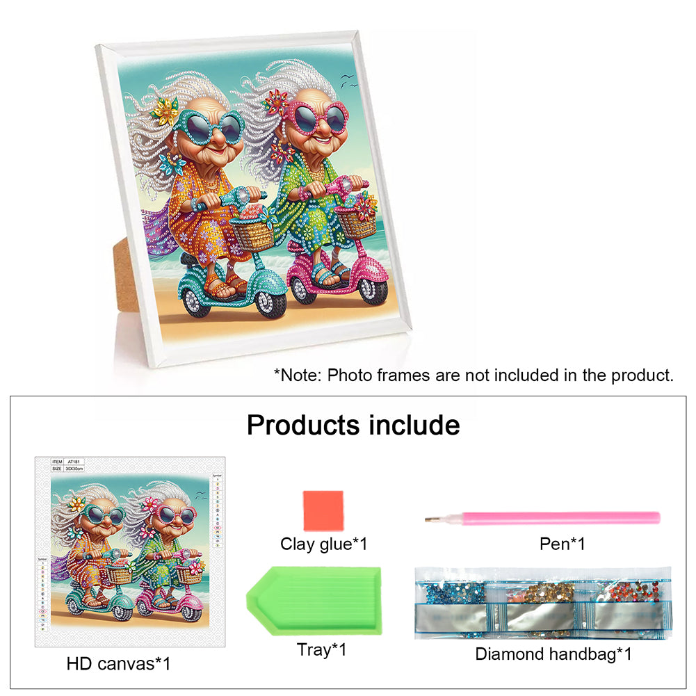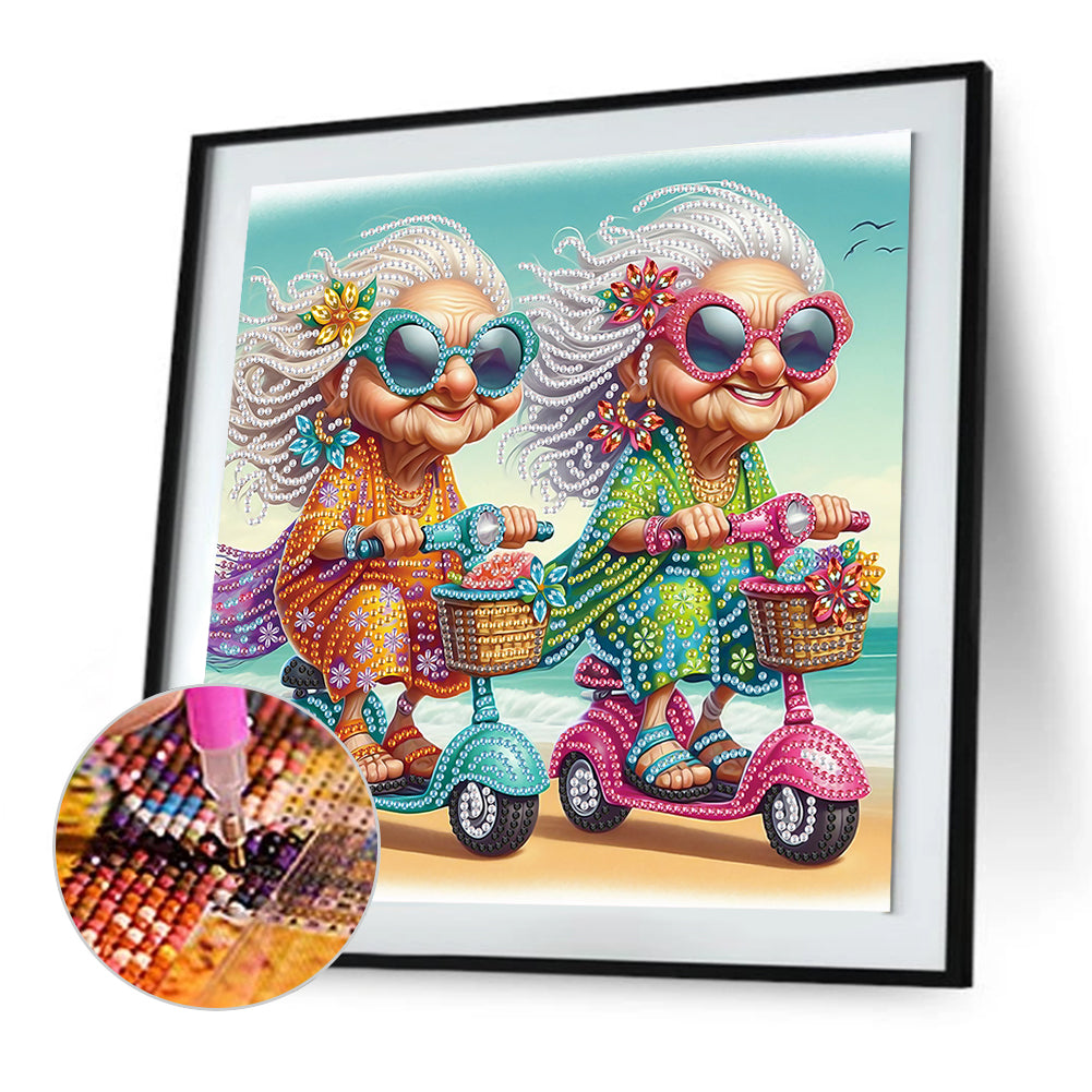 Diamond Painting - Partial Special Shaped - Funny old lady (30*30CM)
