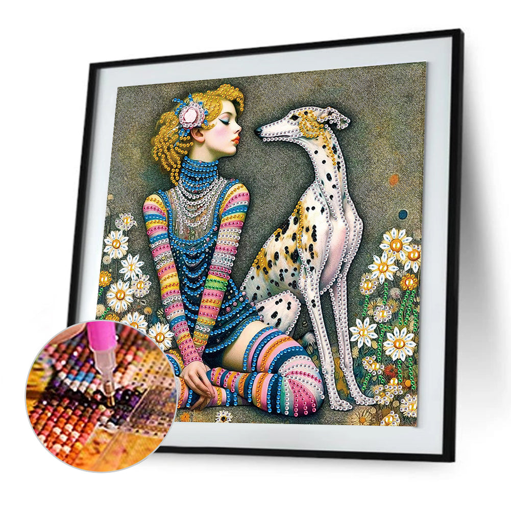 Diamond Painting - Partial Special Shaped - Girl and dog (30*30CM)
