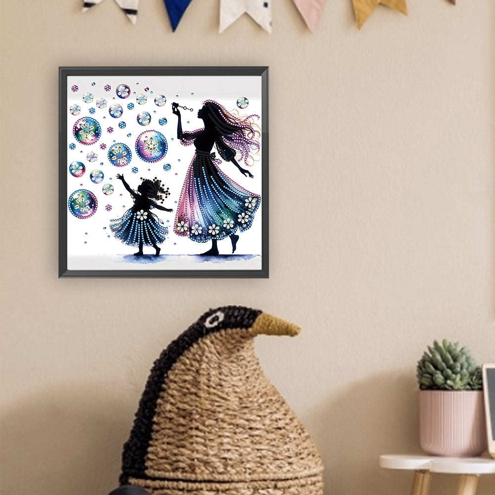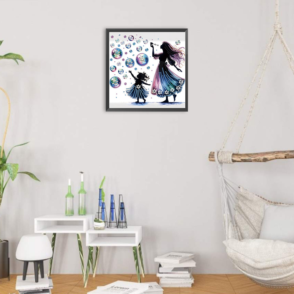 Diamond Painting - Partial Special Shaped - Mother and daughter with colorful bubbles (30*30CM)