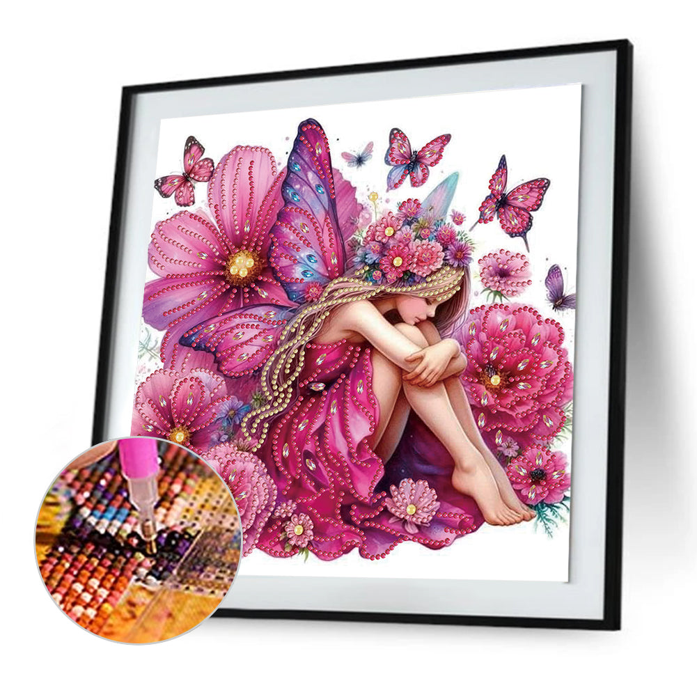 Diamond Painting - Partial Special Shaped - Pink butterfly girl (30*30CM)