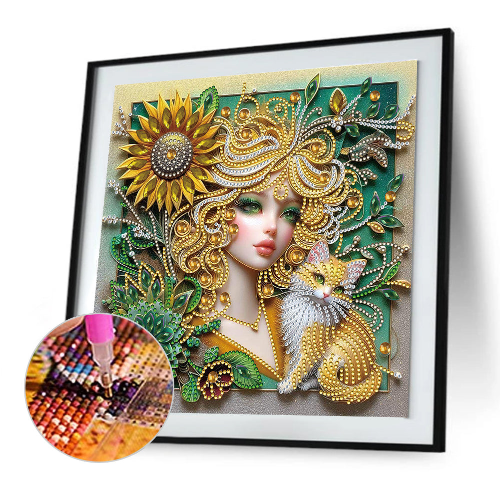 Diamond Painting - Partial Special Shaped - sunflower cat girl (30*30CM)