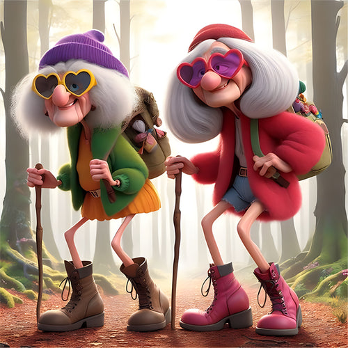 Diamond Painting - Full Round - Mountain climbing old lady Milk (30*30CM)