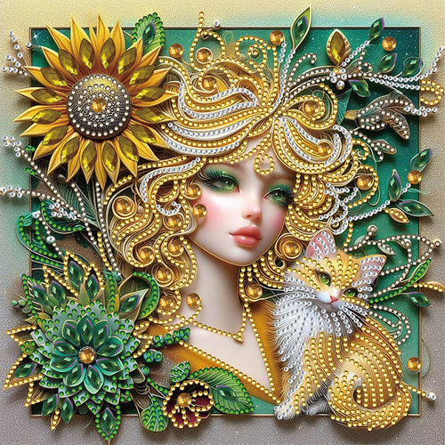 Diamond Painting - Partial Special Shaped - sunflower cat girl (30*30CM)