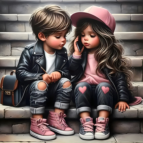 Diamond Painting - Full Round - Girl and boy (40*40CM)