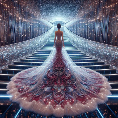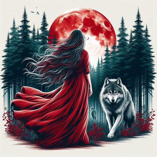 Diamond Painting - Full Round - Girl with dreamy red skirt (40*40CM)