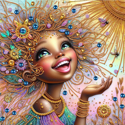 Diamond Painting - Partial Special Shaped - Cheerful Girl (40*40CM)