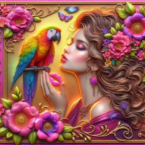 Diamond Painting - Full Round - Parrot and girl (40*40CM)