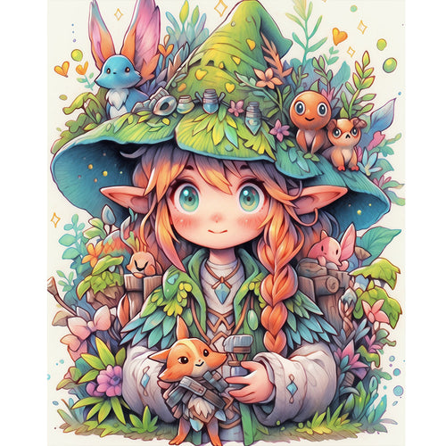 Diamond Painting - Full Round - Forest Animals and Elf Girl (40*50CM)