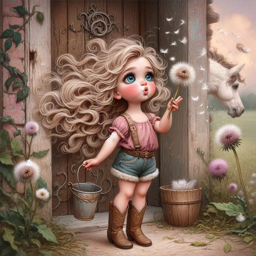 Diamond Painting - Full Round - Dandelion cowboy girl white horse (40*40CM)
