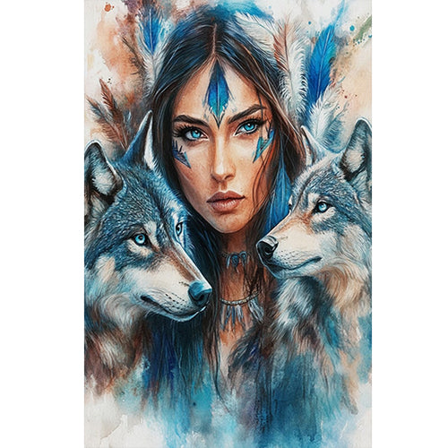 Diamond Painting - Full Round - Indian woman double wolf (40*60CM)