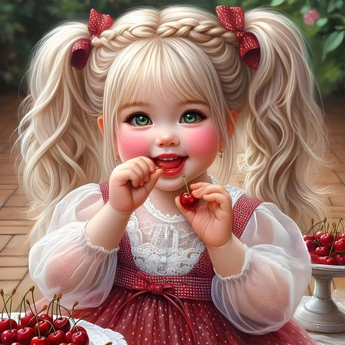 Diamond Painting - Full Round - Little Girl Eating Cherries (40*40CM)