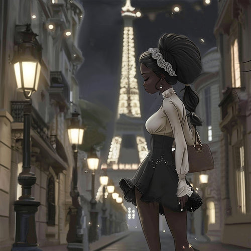Diamond Painting - Full Round - Night tower girl (40*40CM)