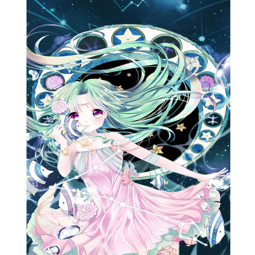 AB Diamond Painting - Full Round - Stars, Moon and Silver-Haired Girl (40*40CM)