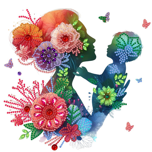 Diamond Painting - Partial Special Shaped - Mother and child silhouette (30*30CM)