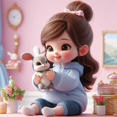 Diamond Painting - Full Round - Little girl and puppy in the garden (30*30CM)