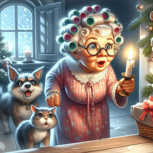 Diamond Painting - Full Round - old lady holding candle (30*30CM)