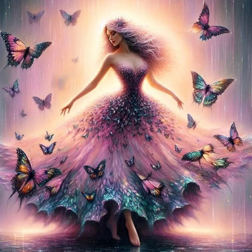 Diamond Painting - Full Round - Girl with butterfly skirt (30*30CM)
