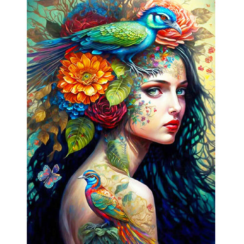 Diamond Painting - Full Round - personality girl flowers and birds back (30*40CM)