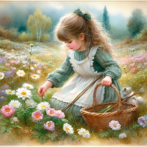Diamond Painting - Full Round - girl picking flowers (40*40CM)
