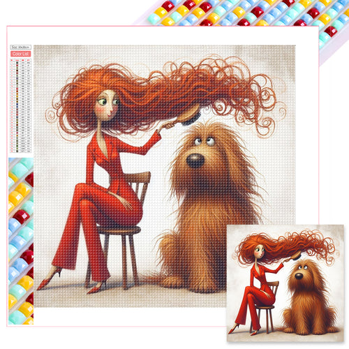 Diamond Painting - Full Square - Woman in red and dog (30*30CM)