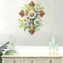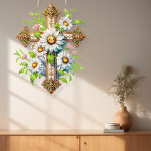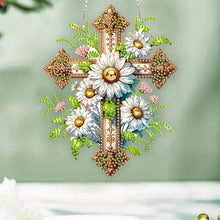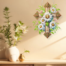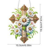 Flowers Cross Diamond Art Hanging Pendant Diamond Painting Hanging Pendant 5D DIY Diamond Painting Dots Pendant for Window Decor