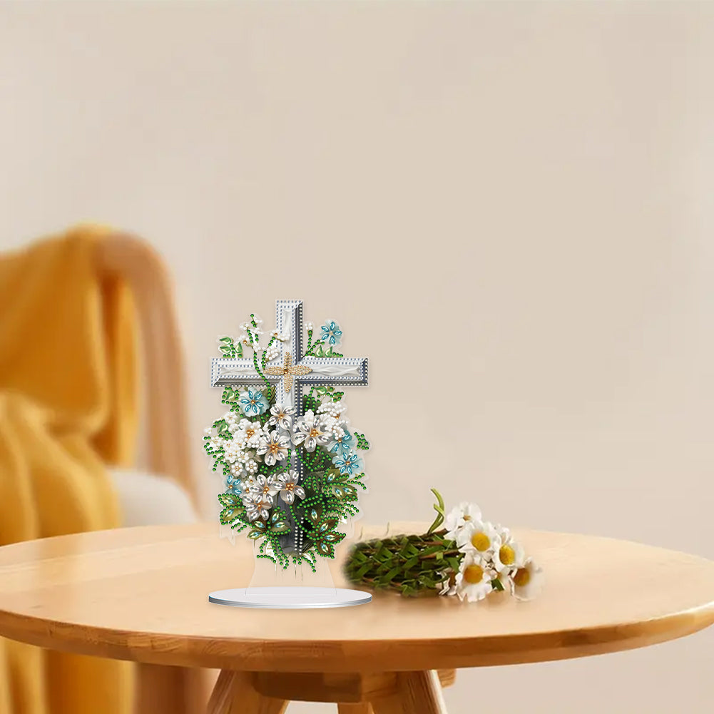 Special Shaped Colorful Flower Cross Desktop Diamond Art Kits for Adult Beginner