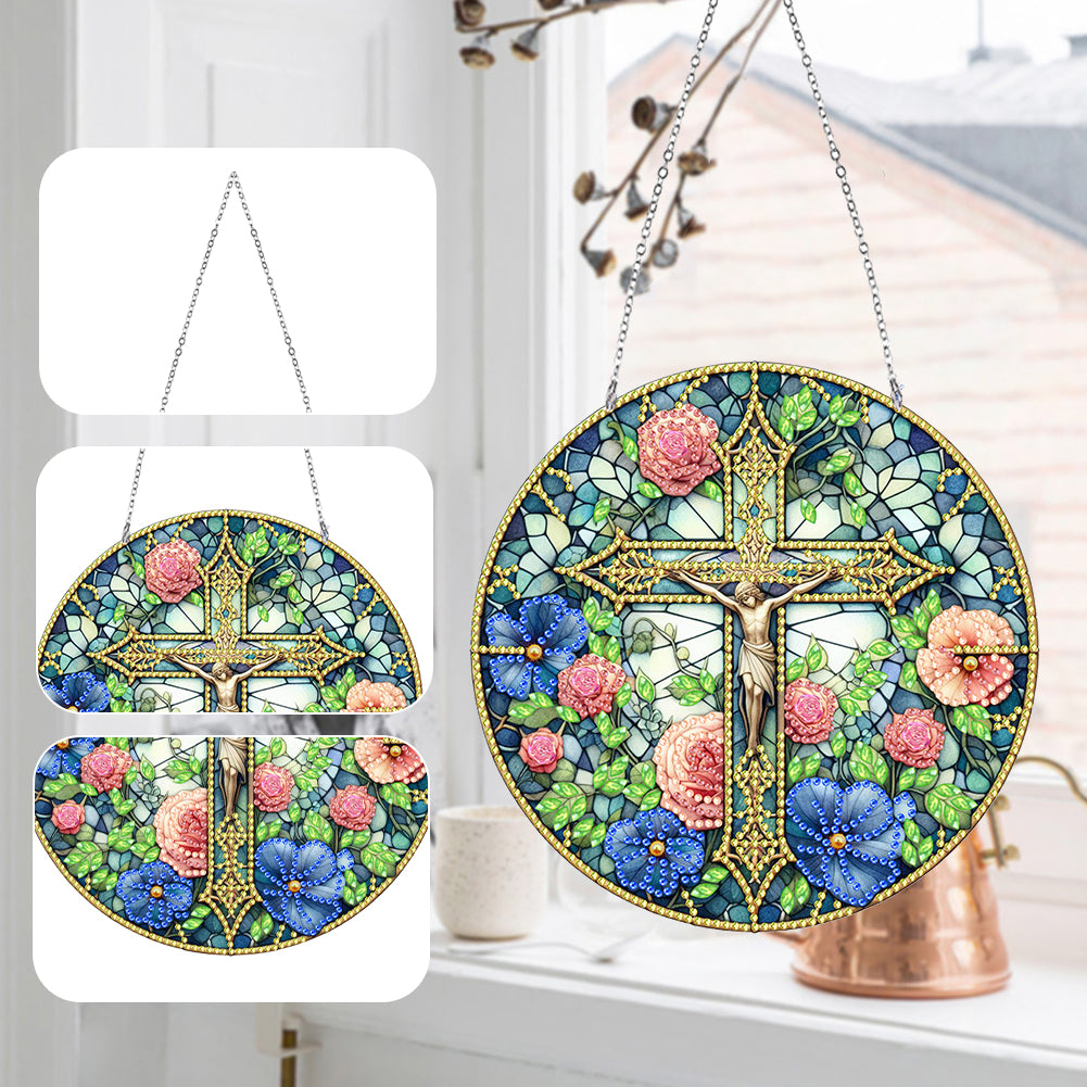 Sun Catcher 5D DIY Diamond Painting Dots Pendant for Office Decor (Jesus Cross)