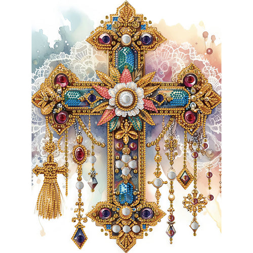 Diamond Painting - Partial Special Shaped - cross and gems (30*30CM)
