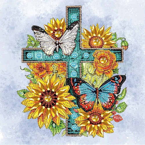 Diamond Painting - Partial Special Shaped - cross and flowers (30*30CM)