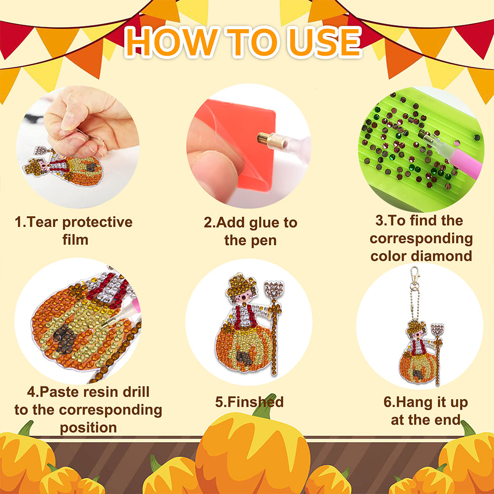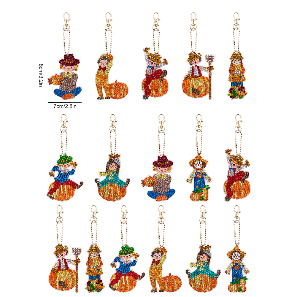 16PCS Double Sided Special Shape Diamond Art Keyring (Scarecrow)