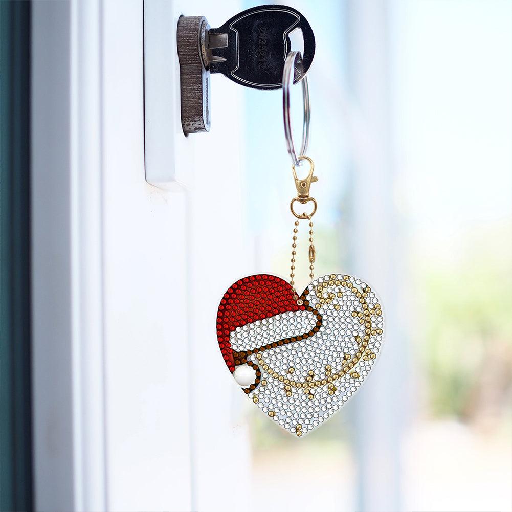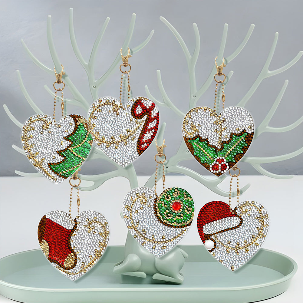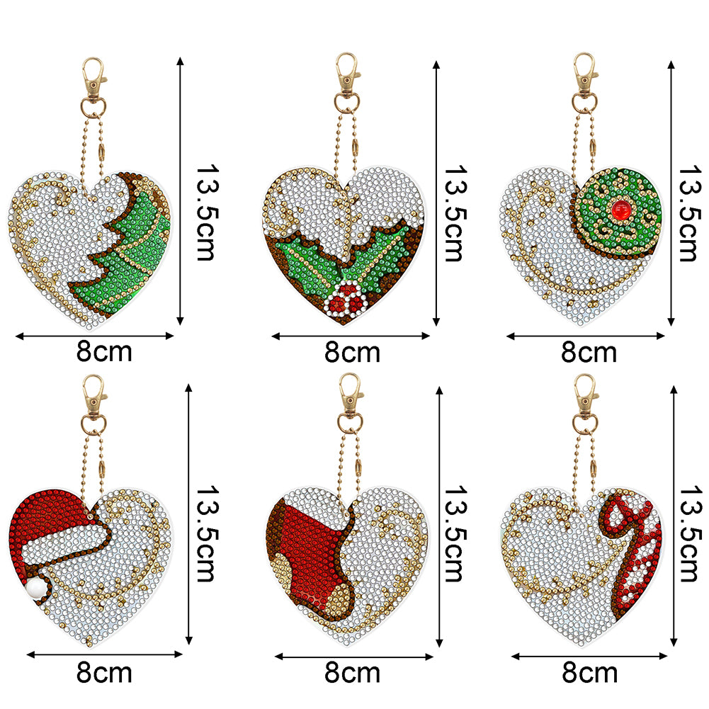 5/6PCS Full Drill Keyring Xmas Dessert Cake Double Sided Xmas Bell Special Shape