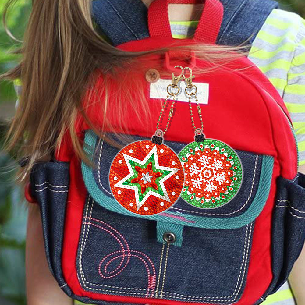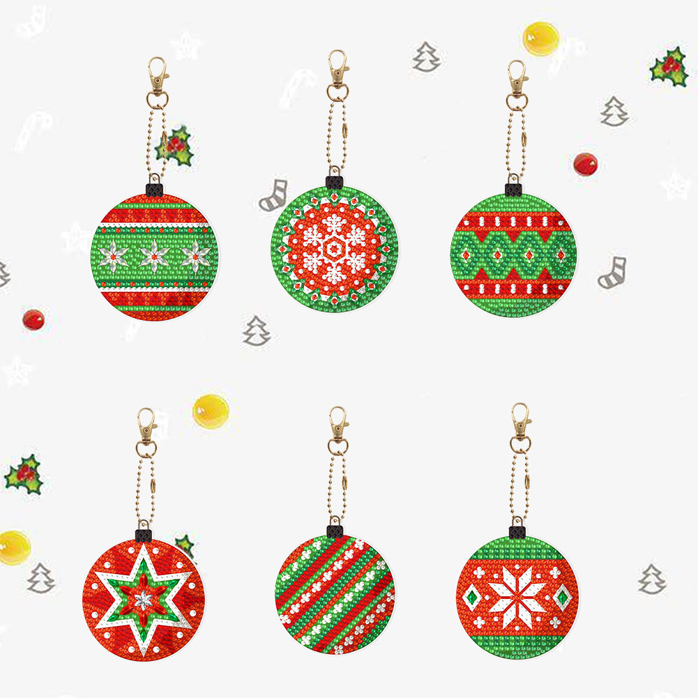 5/6PCS Full Drill Keyring Xmas Dessert Cake Double Sided Xmas Bell Special Shape