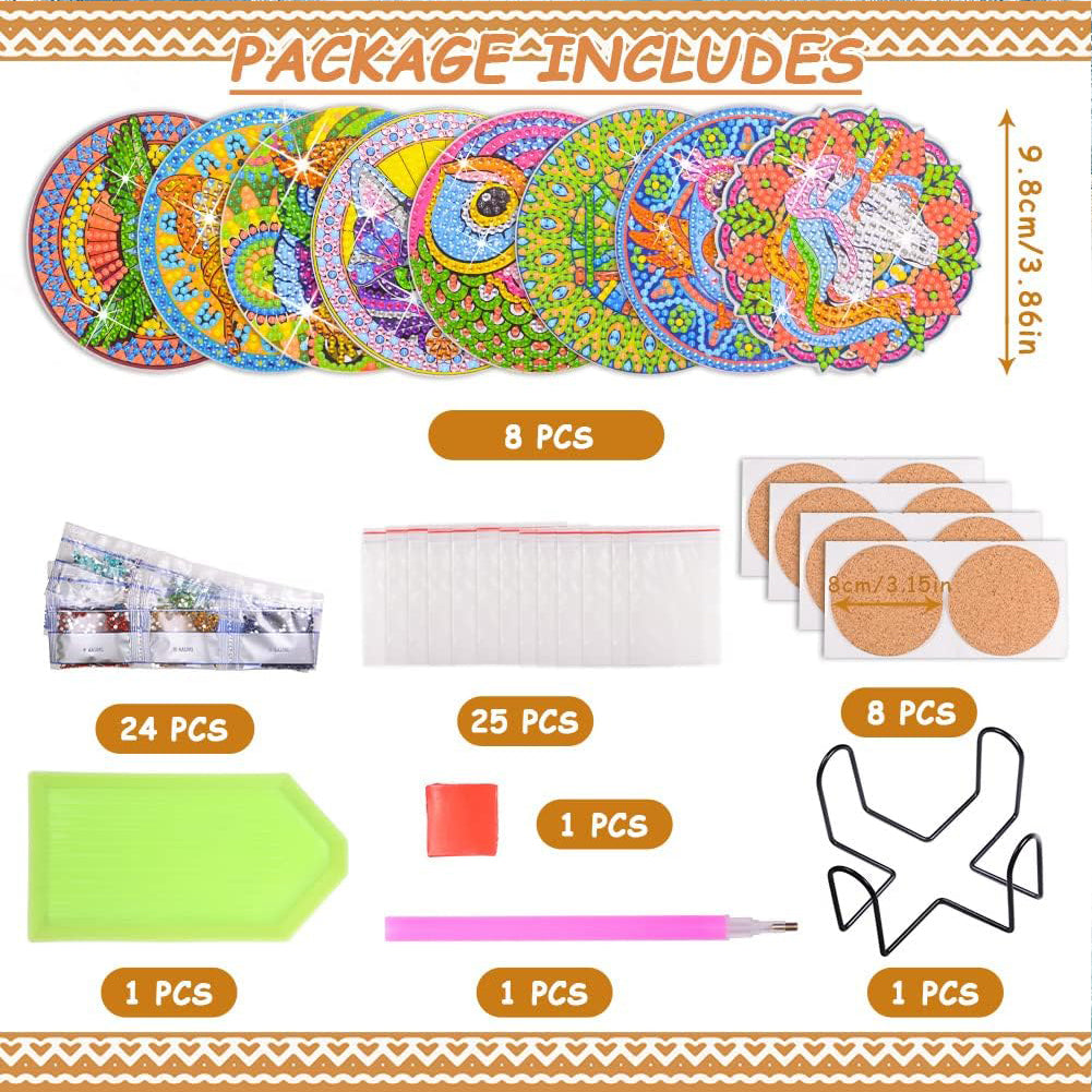 • Load image into Gallery viewer, 6/8/10PCS Special Shape Diamond Painting Art Coaster Kit with Holder Cartoon Cat