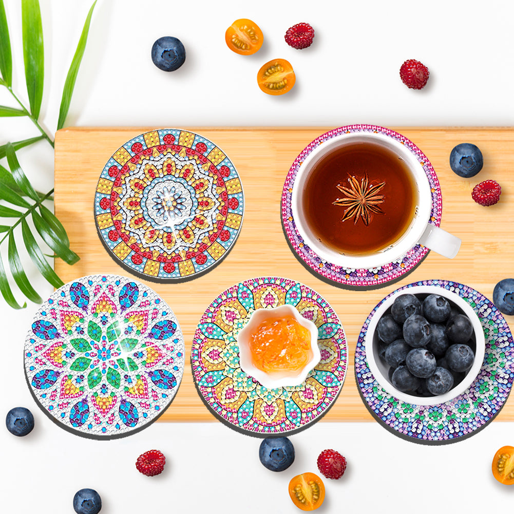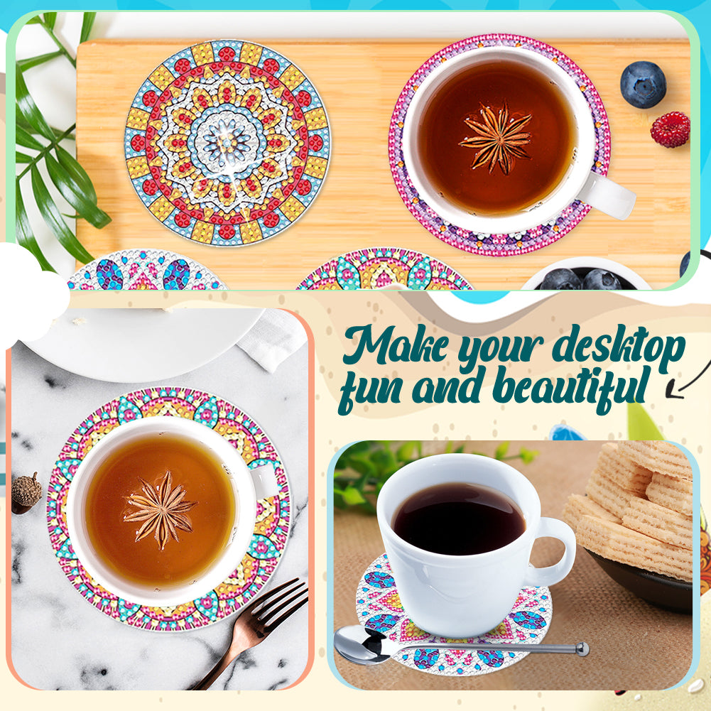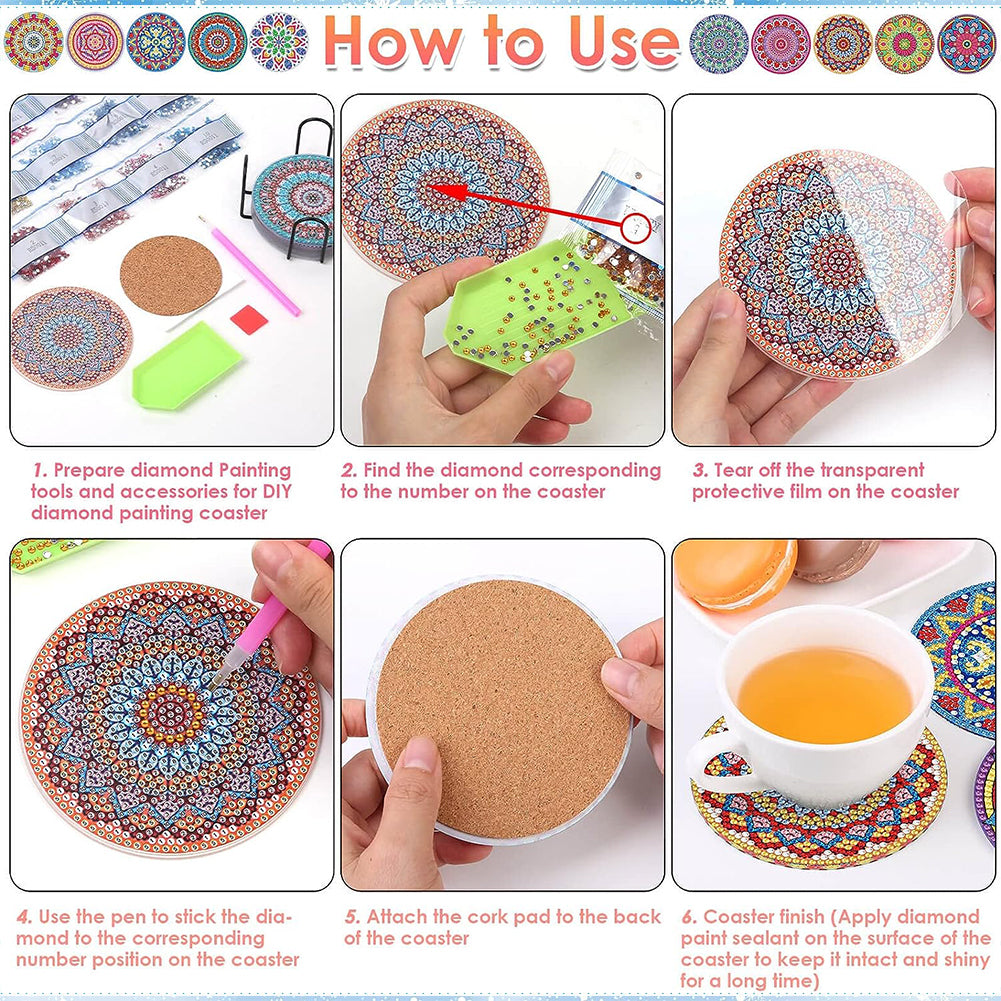 6/8/10PCS Special Shape Diamond Painting Art Coaster Kit with Holder Cartoon Cat