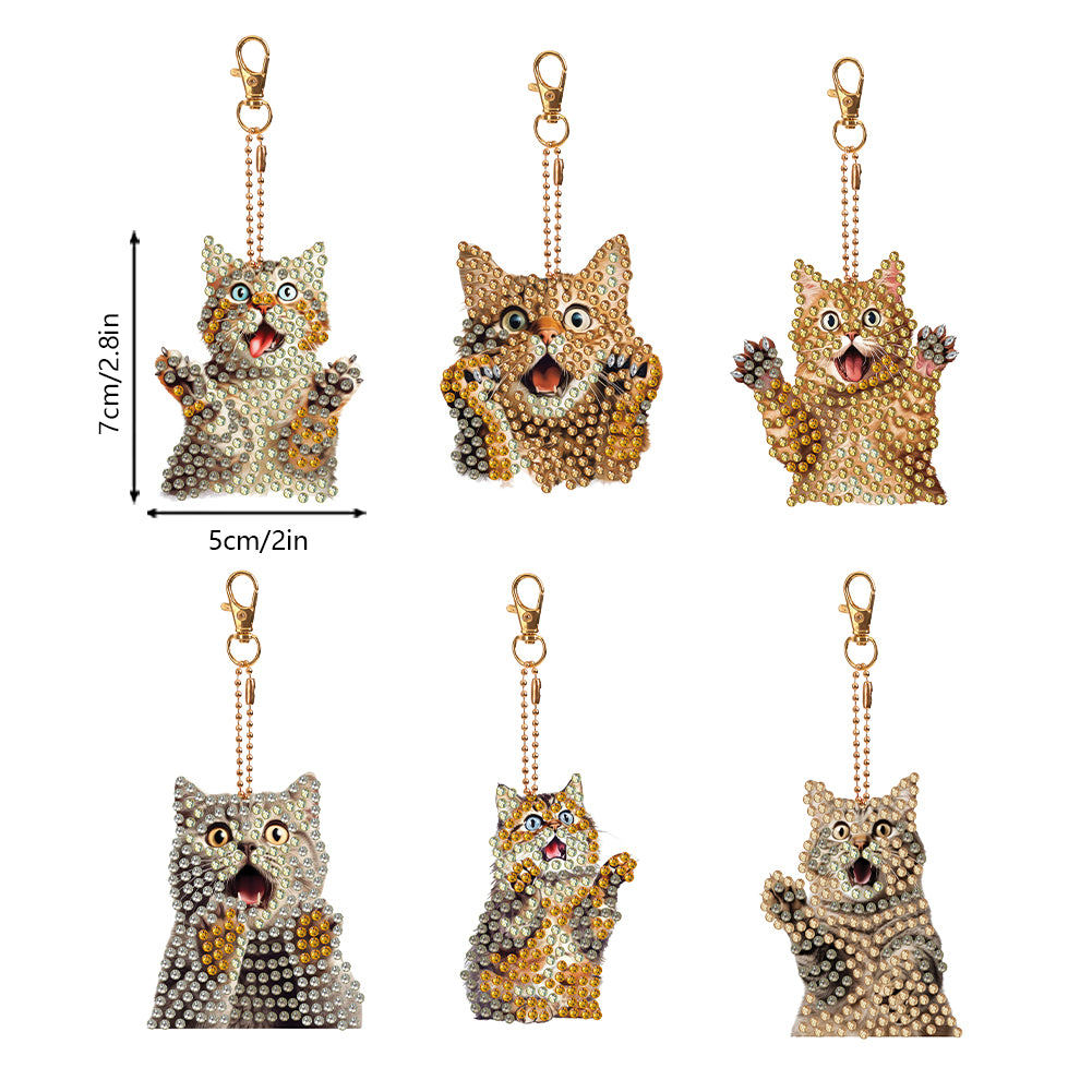 6 PCS Double Sided Special Shape Diamond Painting Keychain (Panicked Cat)